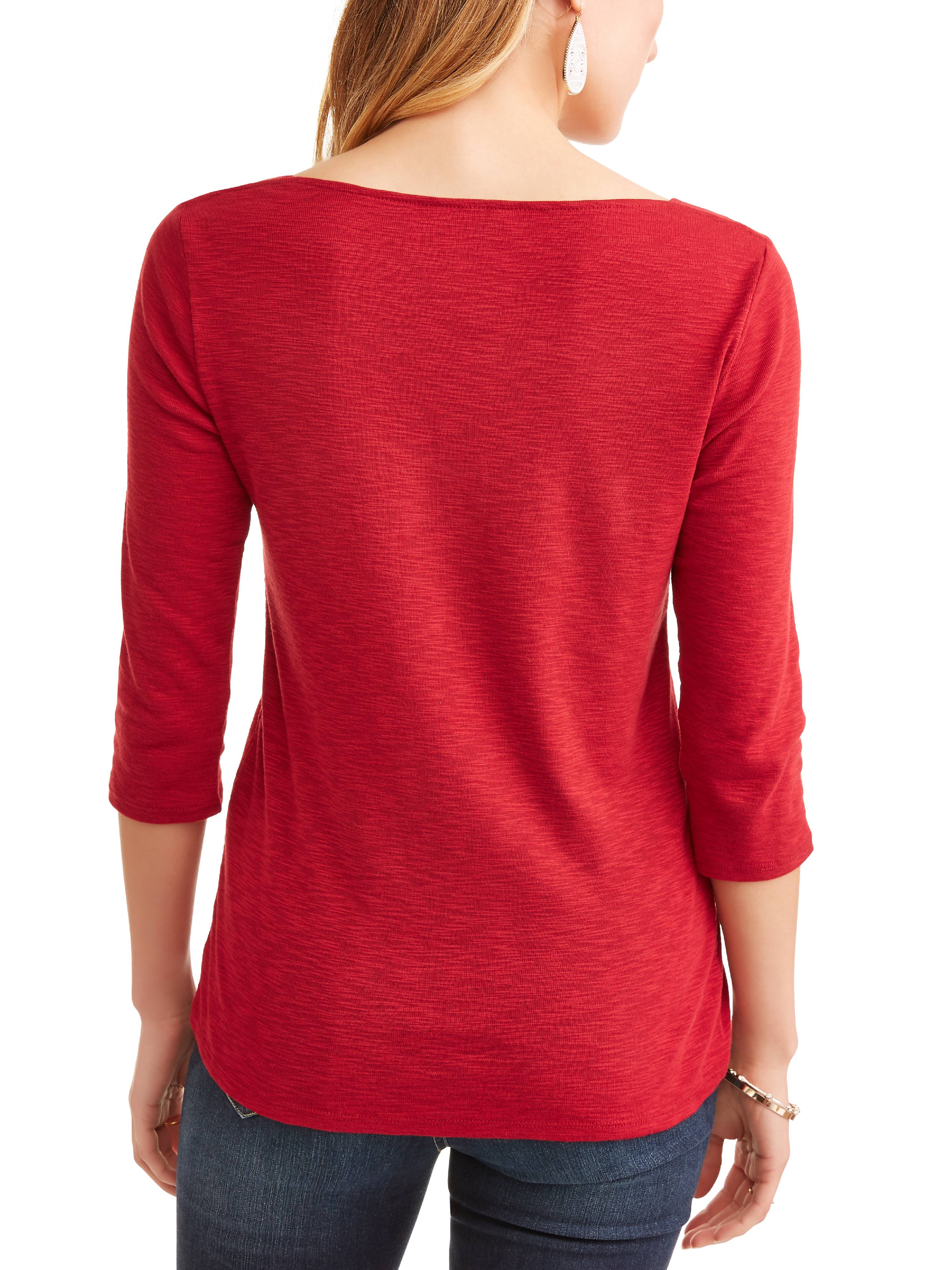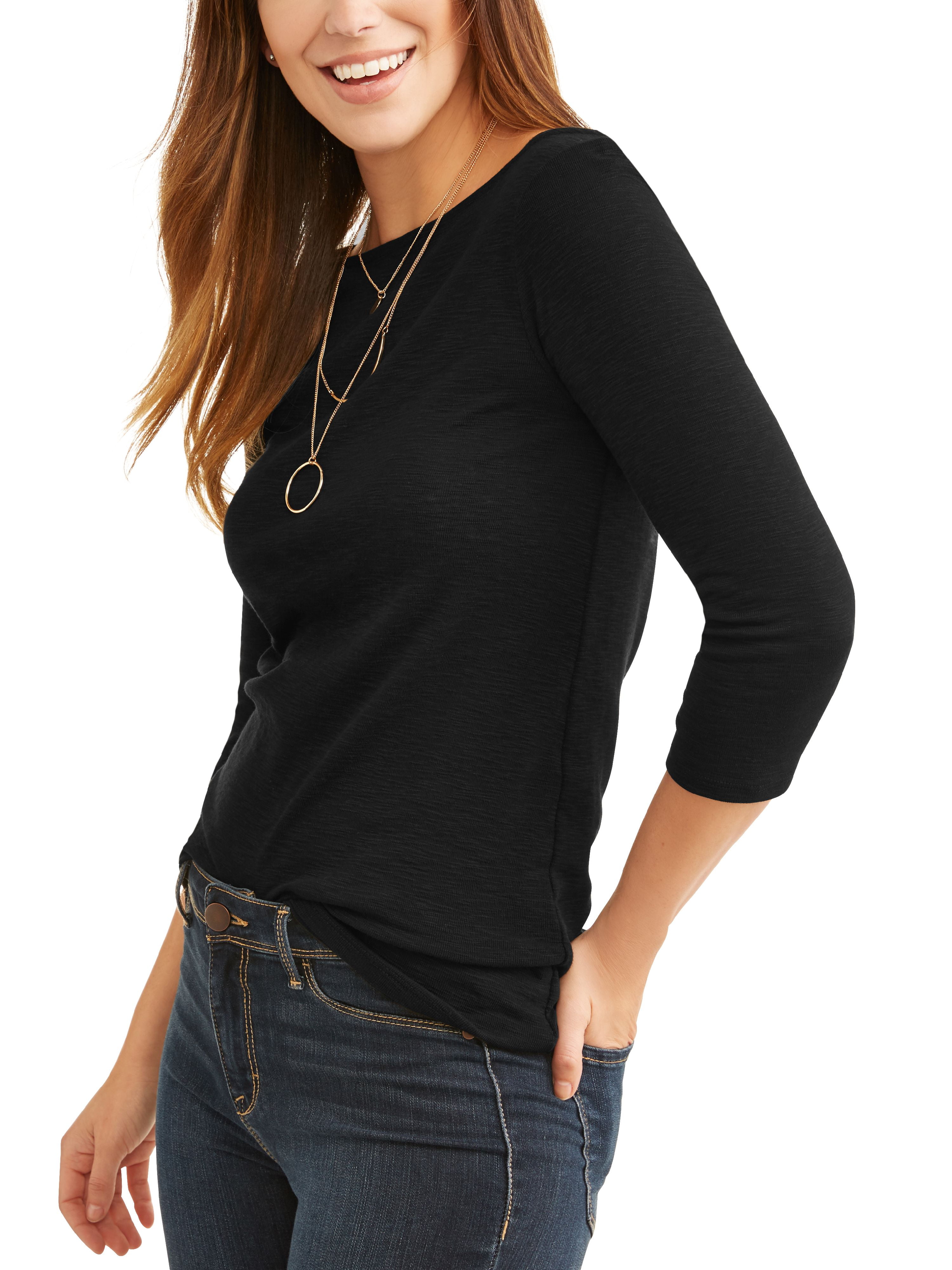 Women S Lightweight Boatneck 3 4 Sleeve T Shirt Walmart Com
